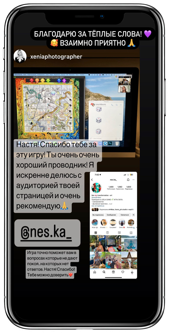 Меня зовут Анастасия Nes. Я живу интересную и насыщенную жизнь, много путешествую, всегда была творческим человеком и имею высшее психологическое образование. Начав проводить игру Лила, я помогла многим людям обрести свой путь и разобраться в себе. Используя свой опыт я создала уникальный практический метод позволяющий достигать своих целей легко. Игра со мной будет практична и комфортна. После игры вы научитесь самостоятельно использовать знания о себе, которые возможно изменят качество вашей жизни.